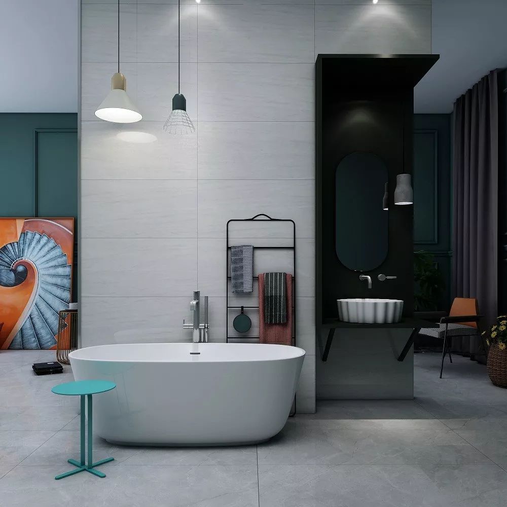 磚的灰搭配浴缸的白,
