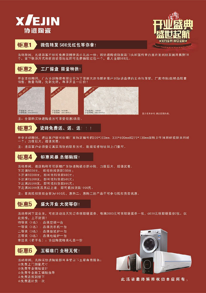 6月17日,在大連終端全體員工的共同協助下,大連協進瓷磚專賣店盛大開業啦